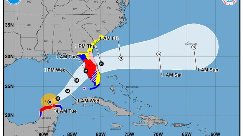 An example of the updated 2026 version of the cone graphic for Hurricane Milton (2024) that shows inland watches and warnings.(Image credit: NOAA National Hurricane Center)